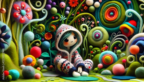 art, fantasy, doll, nature, detail, toy, small, tenderness, creativity, design, figure, children, garden, flower, surrealism, felt, texture, illustration, handcraft, imagination, magic, charme