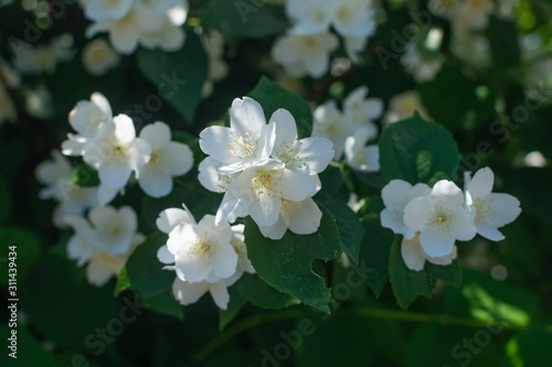 Jasmine flowers on the bush in spring
