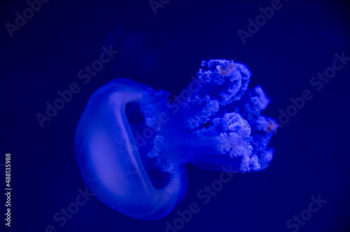 Jellyfish in aquarium, with blue background
