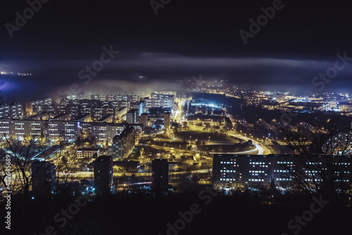 fog, night, apartment block