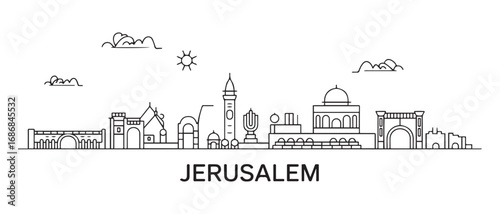 Jerusalem Line Art skyline. Travel Jerusalem famous landmarks. Business and tourism concept for presentation, banner, web site. with white background