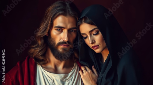 Jesus christ comforting mary magdalene, painting representing christianity and faith