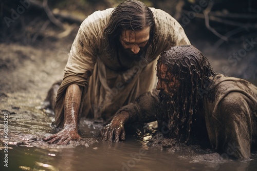 mud, somebody, sin, sinner, man, people, person, pull, help, saviour, jesus christ, ancient, bible, biblical, christian, christianity, church, colours, design, faith, god, history, holy, hope, illustration, jesus christ, jesus christ, religion, religious, saint, love