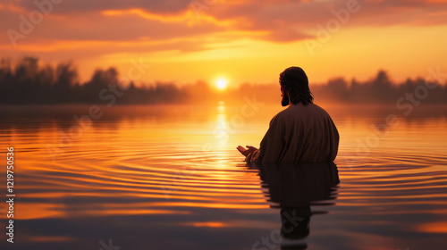 Jesus Walking in the Radiance of Sunset Waters