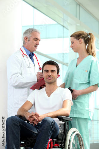 job, doctor, doctor, medicine, health, nurse, nurse, handicap, disabled, disabled, mobility, reduced, invalid, disability, guy, aids, specialist, medicals, missy, labcoat, wheelchair, wheelchair, smiling, smiling, stethoscope, office, daytime, interior, office, european, european, front view
