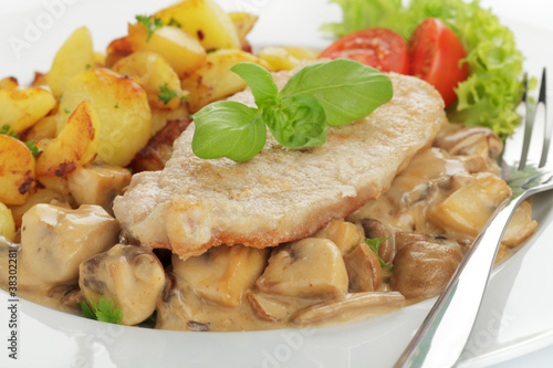 mushroom, light meal, chips, pork, food, meat, potato, food, food, aliment, salad, food, animal, tomatoes, nourish, food, butcher, chervil, butcher, alimentary, steak, snack, champignon, gastronomy, inn
