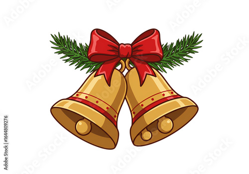 jingle-bell, christmas decoration, red ribbon, celebration, festive season, decoration, ornament, christmas ornament, illustration, clip art, graphic, design element, christmas design, greeting card, christmas card, bell, ribbon, pine, gold, red