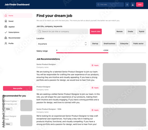 Job Finder Dashboard, Employment Search Panel, Career Opportunities Hub, Work Listings Interface, Job Hunting Platform, Recruitment Management System, Vacancy Tracker, Hiring Portal, Career Management