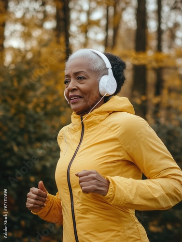 jogging, elderly, woman, exercise, park, autumn, activity, health, fitness, nature, leisure, time, earphones, lifestyle, sporty, wear, jacket, fall, colours, tree, leaf, leaf, filled, setting, running, gear, senior, citizen, older, enjoying, listening, music, living, moment, seasonal