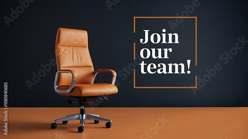 Join Our Team Recruitment Concept with a Sleek Orange Office Chair. We Are Hiring, Hiring recruitment, Join Our Team, job vacancy, Hiring poster, Now hiring