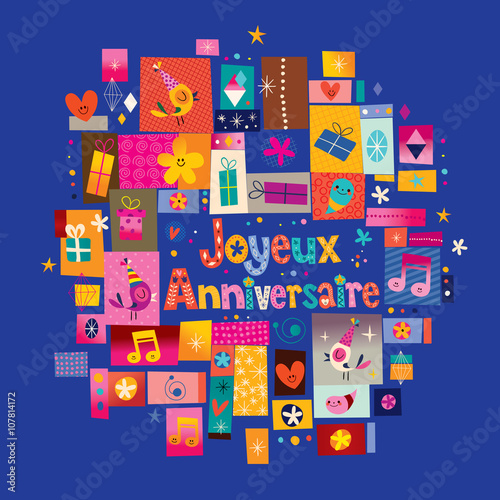 Joyeux Anniversaire Happy Birthday in French greeting card