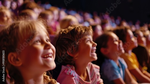 joy, laughter, children, girl, performance, audience, show, entertainment, fun, happy, smiling, cheerful, excitement, enthusiasm, playful, delight, amusement, gleeful, concert, theatre, stage, music, dance, family, friends, togetherness, celebration, festival, event, children, young, boy, group, crowd, spectator, energy, vibrant, live, applause, light, colourful, bright, positive, moment, memory, magic, wonder, innocence