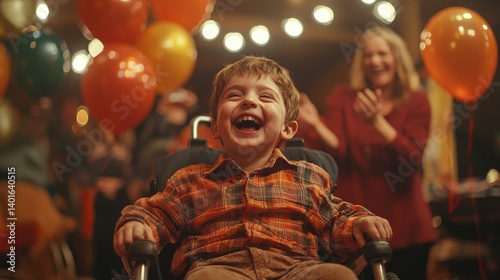 children, boy, wheelchair, happy, celebration, party, joy, laughter, balloon, family, special needs, disability, inclusion, support, friendship, love, community, event, fun, optimism, acceptance, diversity, disabled, encouragement, special, children, joyful, childhood, optimistic, positive, empowerment, togetherness, together, warmth, loving, welcoming