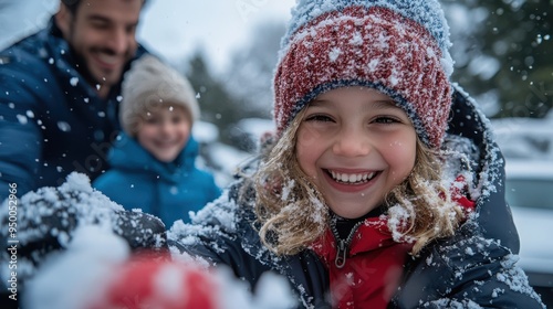children, winter, snow, playful, smile, family, happiness, fun, cold, snowflake, joyful, hat, jacket, red, blue, snowball, laughing, girl, childhood, family time, closeup, happy, frosty, seasonal, bonding, outdoors, joy, lass, cheerful, winter scene, holiday season