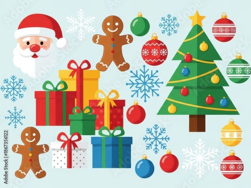 christmas, santa, gingerbread, gift, tree, ornament, snowflake, holiday, celebration, decoration, present, festive, season, cheer, joy, chaplet, star, bow, ribbon, winter, merry
