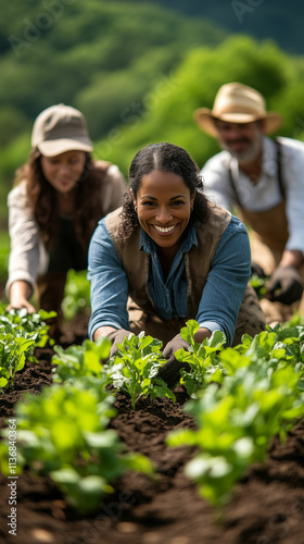 farming, agriculture, planting, crop, nature, teamwork, sunny, rural, field, garden, dirtied, growth, community, organic, environment, landscape, labor, joy, woman, man, work, hand, green, earth, cultivation, smiling, summer, vegetable, gardening, sun, healthy, produce, farm, skill, sustainability, harvest, ecosystem, livelihood, physical, countryside, plant, flourishing, expertise, effort