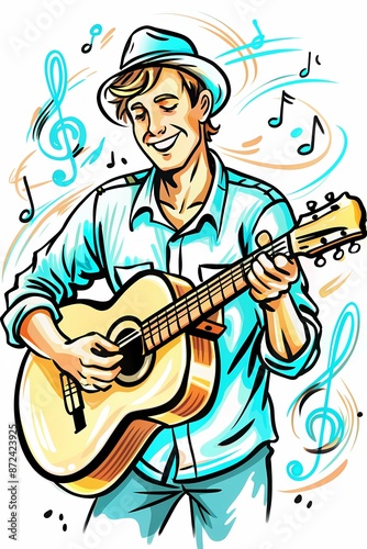 Joyful Guitarist Playing Music, Ideal for Music School Posters, Event Flyers, and Musician Portraits