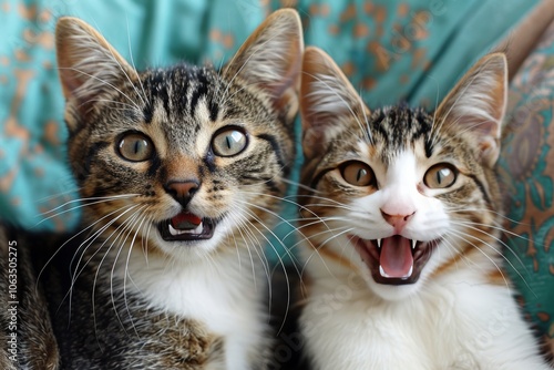 Joyful pets displaying surprise against a vibrant blue backdrop with room for custom text