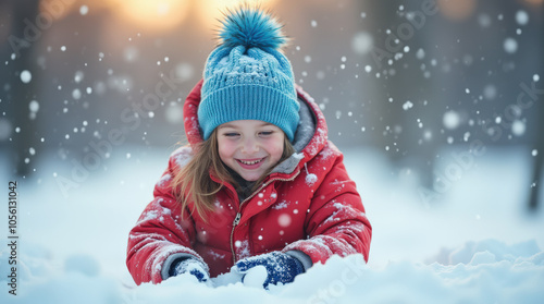 Joyful Winter Fun: Kid Playing in Snow - Adorable Children Enjoying Snowy Adventure in Cozy Winter Clothes