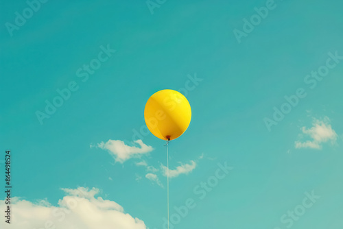 joyful yellow balloon against clear blue sky with fluffy clouds