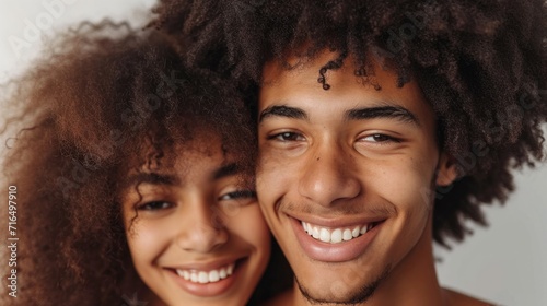 joyful, loving, afro, young, couple, beauty, portrait, posing, together, stylish, hair, studio, light, background, happiness, connection, intimacy, trendy, chic, fashionable, radiant, smile, romance, laughter, oneness, diversity, romantic, carefree, vibrant, inclusive, playful, affectionate, joyous, modern, cheerful, contemporary, african american, african, black, closeup