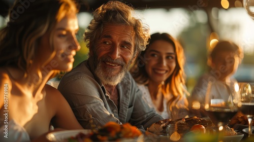 Joyous atmosphere of a Father's Day celebration, complete with family gatherings, delicious meals, and thoughtful gifts