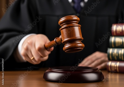 Judge hitting gavel in courtroom