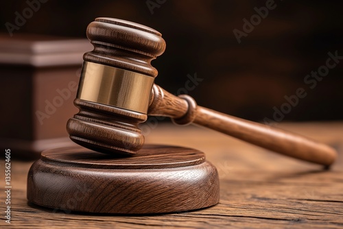 Judge's Gavel and Wooden Mallet on Brown Countertop: Symbol of Justice and Authority in Legal Courtrooms