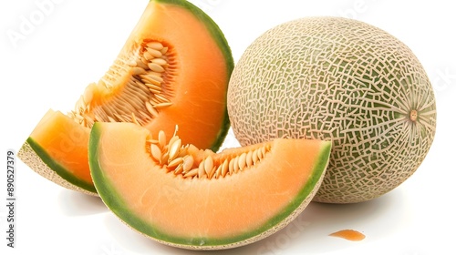 Juicy Cantaloupe Slices on Clean White Background Showcasing Vibrant Orange Color and Rough