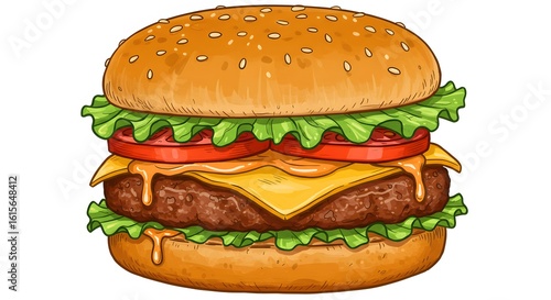 Juicy Cheeseburger Illustration Delicious Fast Food Graphic