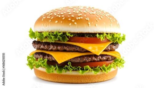 burger, cheeseburger, double, beef, patty, cheese, lettuce, tomatoes, sesame, bun, food, meal, delicious, tasty, appetising, junk food, fast food, cookery, gastronomy, culinary, dinner, lunch, snack, eat, eating, eatery, cafes, tempting, mouth-watering, savoury, greasy, rich, filling, satisfying, american, classic, epicure