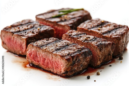 Juicy grilled steak pieces cooked to perfection with a rich pink center and seared edges