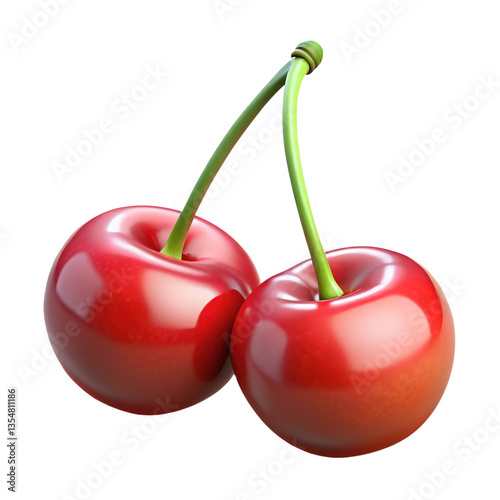 Juicy Red Cherries Realistic 3D Render of Two Cherries Isolated on White