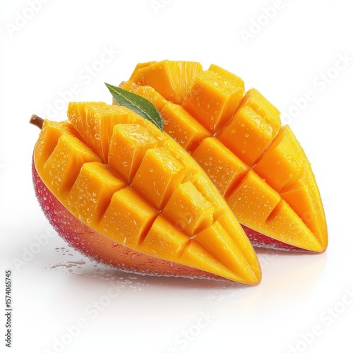 Juicy Sliced Mangoes with Water Droplets Ready to Eat Tropical Fruit Delight