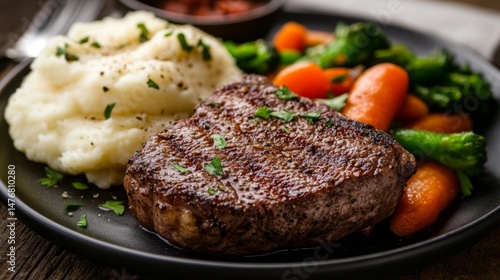 Juicy Steak with Creamy Mashed Potatoes and Fresh Vegetables