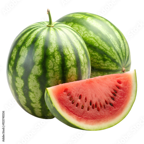 Juicy watermelon with sliced isolated on white background. Ai generated