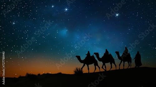 christmas, silhouette, camel, desert, horse, night, bethlehem, sunset, vector, illustration, star, sky, three, animal, nativity, cowboy, wise, landscape, travel, man, nature, egypt, wild, camel