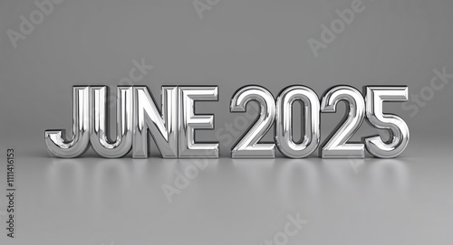 june, 2025, word, three-dimensional, shiny, silver, metallic, lettering, render, plain, background, business, concept, text, illustration, idea, success, signs, icon, symbol, letter, marketing, cyberspace, web, design, cut, letter, card