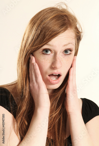 woman, hair, portrait, freckle, amazement, young, dress, long, red, black