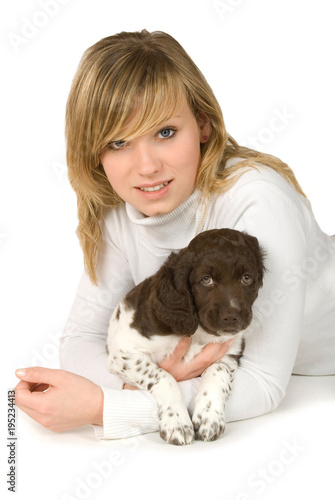 dog, puppy, puppy, woman, missy, girl, blond, lie, horizontal, animal, isolated