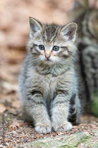 Junge Wildkatze beobachtet neugierig mit grossen Augen