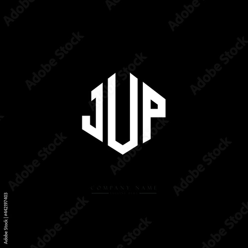 JUP letter logo design with polygon shape. JUP polygon logo monogram. JUP cube logo design. JUP hexagon vector logo template white and black colors. JUP monogram, JUP business and real estate logo.