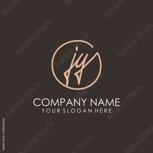 JY initials signature logo. Handwritten vector logo template connected to a circle. Hand drawn Calligraphy lettering Vector illustration.