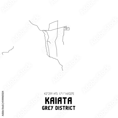 Kaiata, Grey District, New Zealand. Minimalistic road map with black and white lines