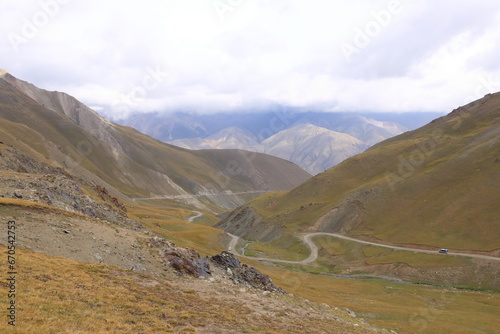 Kalmak Ashu pass in Central Tian Shan mountains, way to Song Kol lake, Kyrgyzstan, Central Asia
