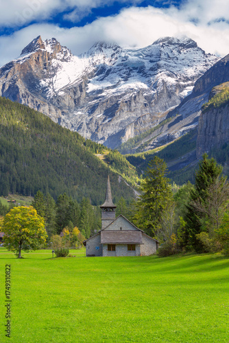 Kandersteg church, high mountains, Switzerland