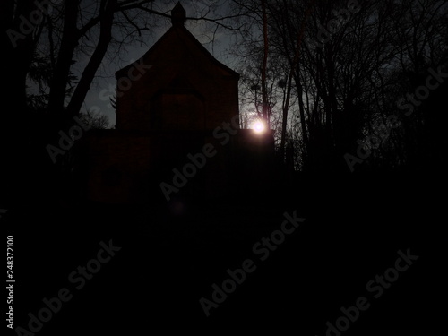by night, sad, dark, eerie, unreal, full moon, church, dark
