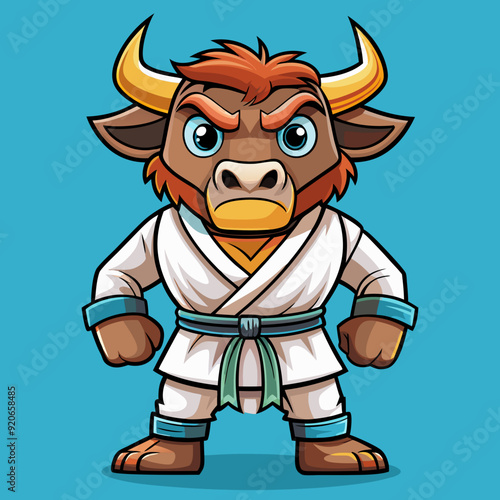 karate bull maskot in kimono