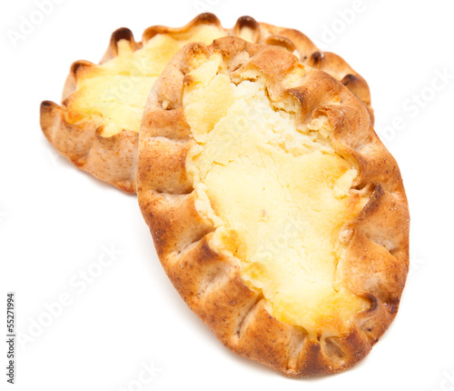 traditional, food, snack, staple, rye, wheat, crust, open, pastry, potato, filling, baked, bread, good, baked goods, isolated on white, isolated, nobody, carb, carbohydrate