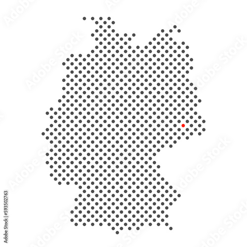 Karte von Deutschland aus Punkten mit Markierung von Dresden